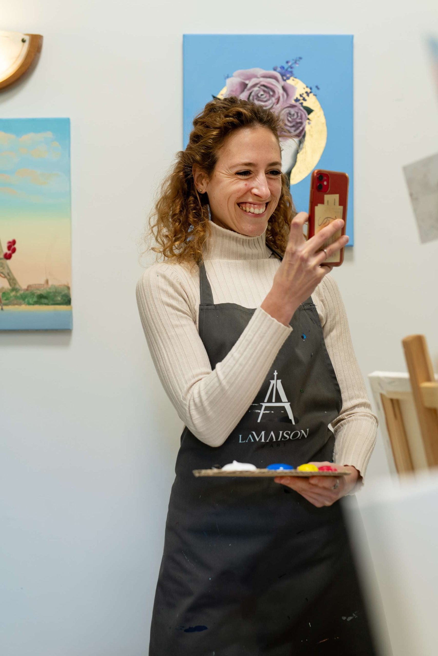 La Maison d’Art (pronunciation: “la mɛzɔ̃ daʁ”) Joyful Painting Studio opened its doors in January 2023 in Óbuda, within the ground-floor apartment of a more than 110-year-old family house, which sets the foundation for its cozy and extraordinary atmosphere. Founded and artistically led by painter Klára Körmendi, who herself began her journey in similar circumstances, the studio’s every painting is unique and exclusively our own creations. The painting selection is continuously updated to ensure returning guests always find something new to enjoy.